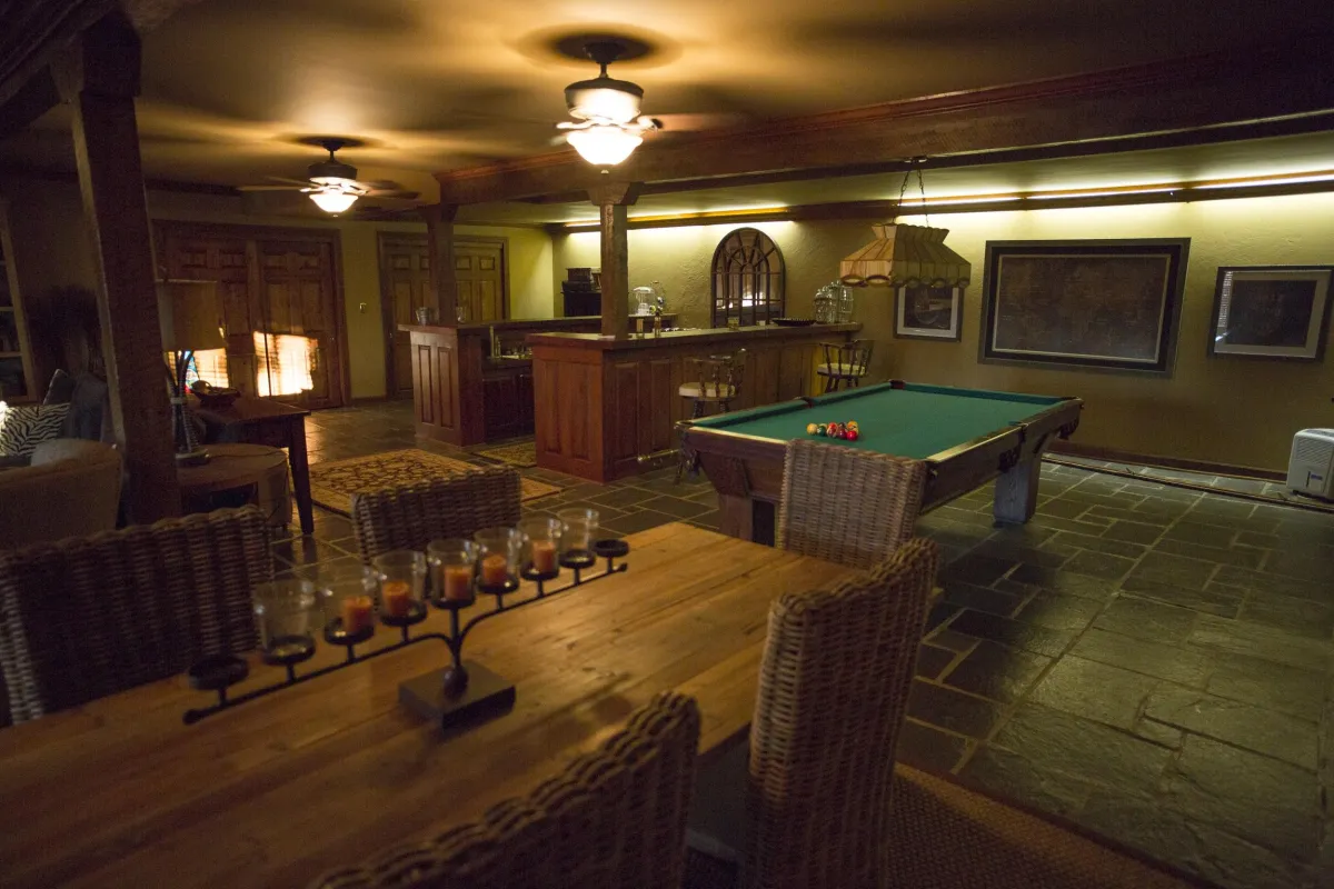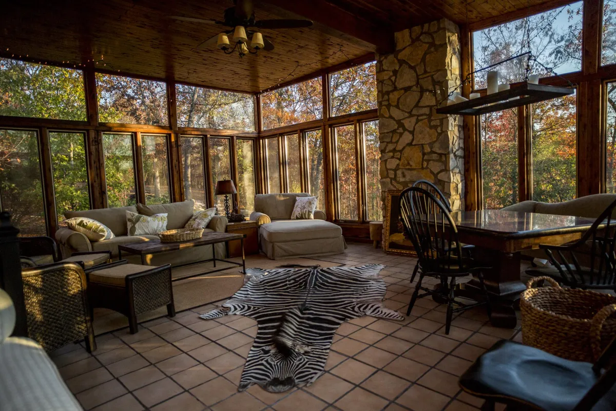 Beyond the rooms themselves, the lodge is built for gathering and unwinding. Each morning begins with a hot, prepared breakfast before heading into the field for professionally guided elk hunting trips, premier whitetail deer hunts, or all-inclusive red stag hunting packages. Evenings bring hunters together around the table to share stories and celebrate the day’s successes. The spacious great room and stone fireplace set the stage for relaxed conversations late into the night, while expansive porches overlooking the Ozark landscape provide a peaceful place to enjoy quiet moments and scenic views.